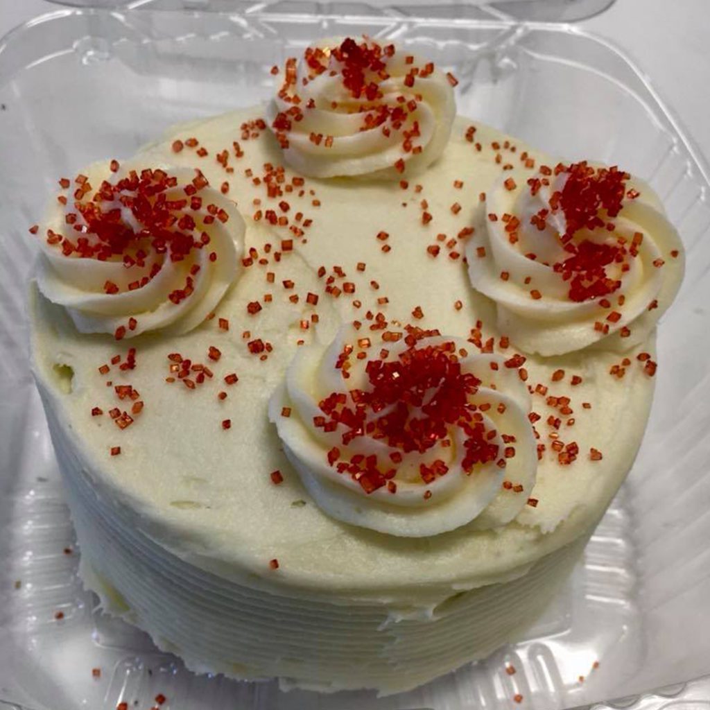 This homemade red velvet cake is soft and moist with silky smooth cream cheese icing. Decorated on top with cream cheese rosettes and red sugar. You’ll definitely want more than one bite of this velvety crimson delight!